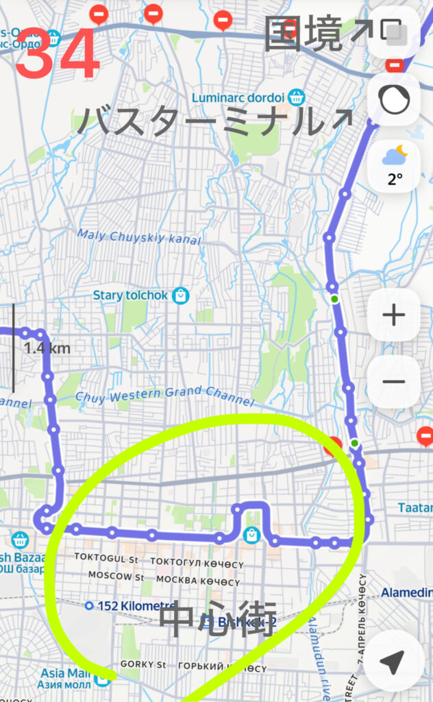 中央アジアではGoogle Mapが急にポンコツになるのでYandexMapsか2GISという地図アプリの利用がおすすめです。