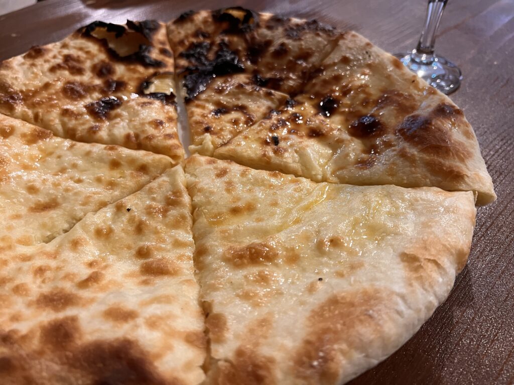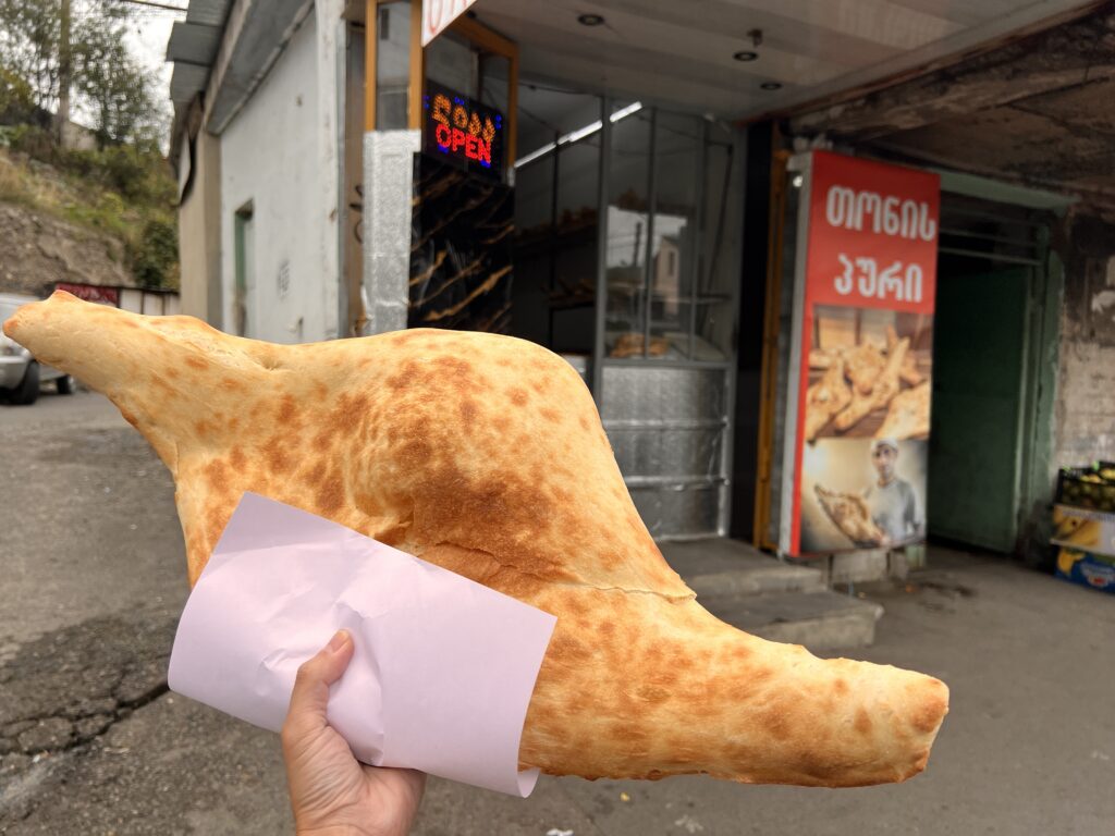 外カリカリ中もちもちのジョージア伝統の基本のパン。めっちゃでかい。塩気があってそのままでも美味しく食べられる。パン屋さんでは常にお客さんが買いにくるから常にパンを焼いてて、大体アツアツでふかふかの最高の状態で買うことができる。