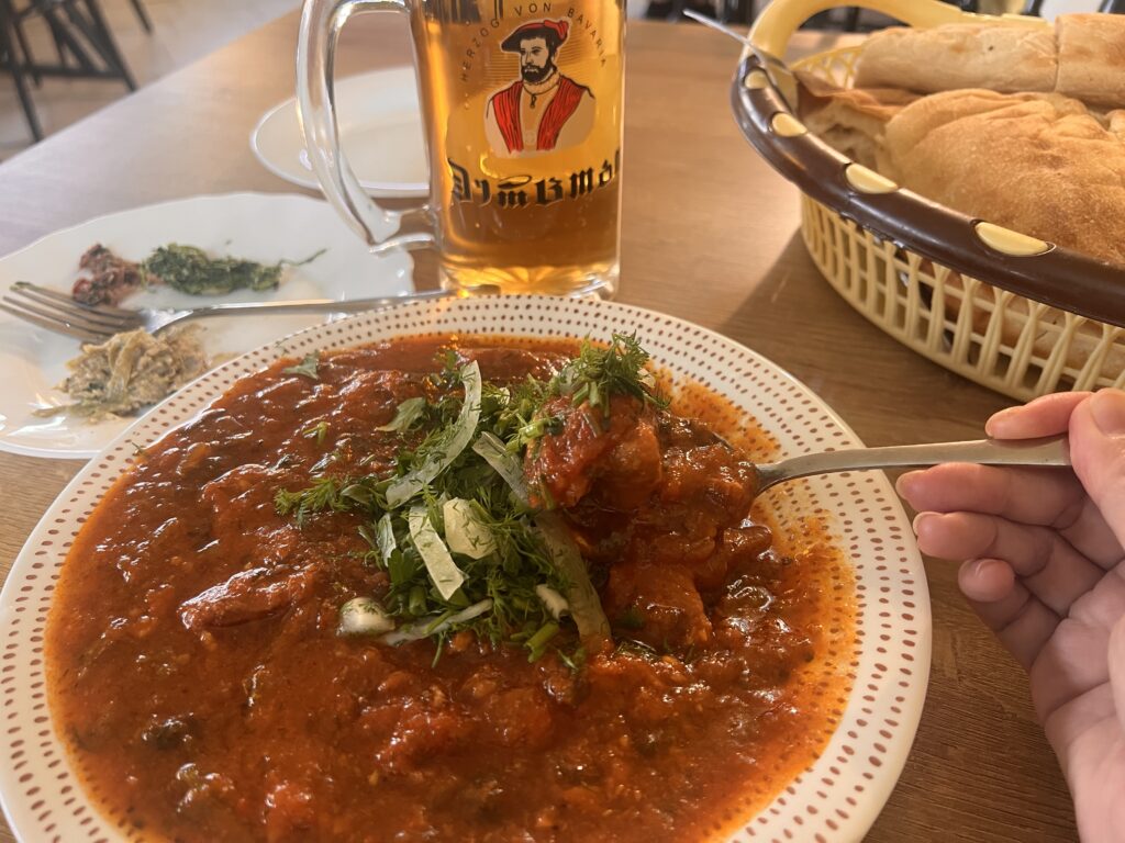 ていうか食堂でワイン飲んでる地元のおじさんあんまり見ないな。っていうかクタイシでは1回も見たことないな。笑 ジョージアの料理は基本しょっぱ味が強いので、ビールが進みまくる構造になっています。ビールあってちょうどいいっていうか。