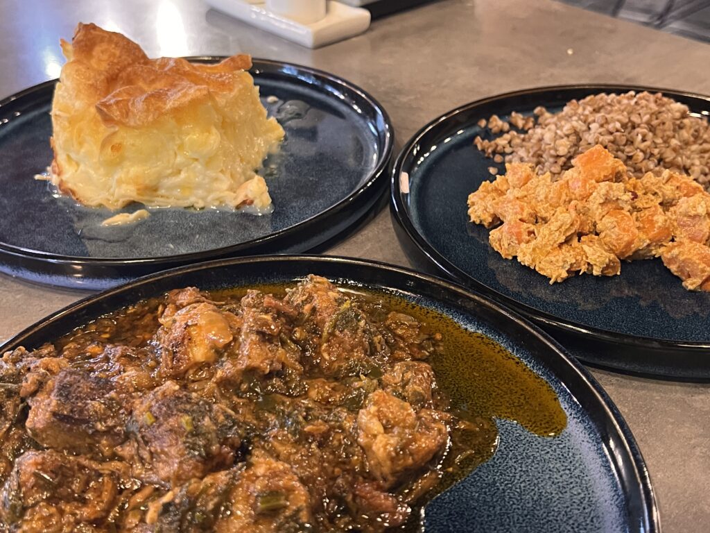 作り置きを計り売りするお店で、ジョージアっぽいおかずから各種惣菜パン、デザート、コーヒーまで取り揃えております。好きなものを好きなだけ食べられるので、レストランでは単品でお腹いっぱいのおひとりさまにも便利です!