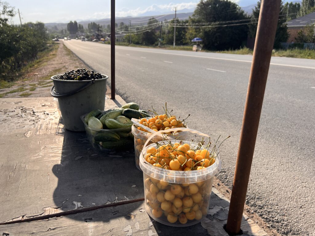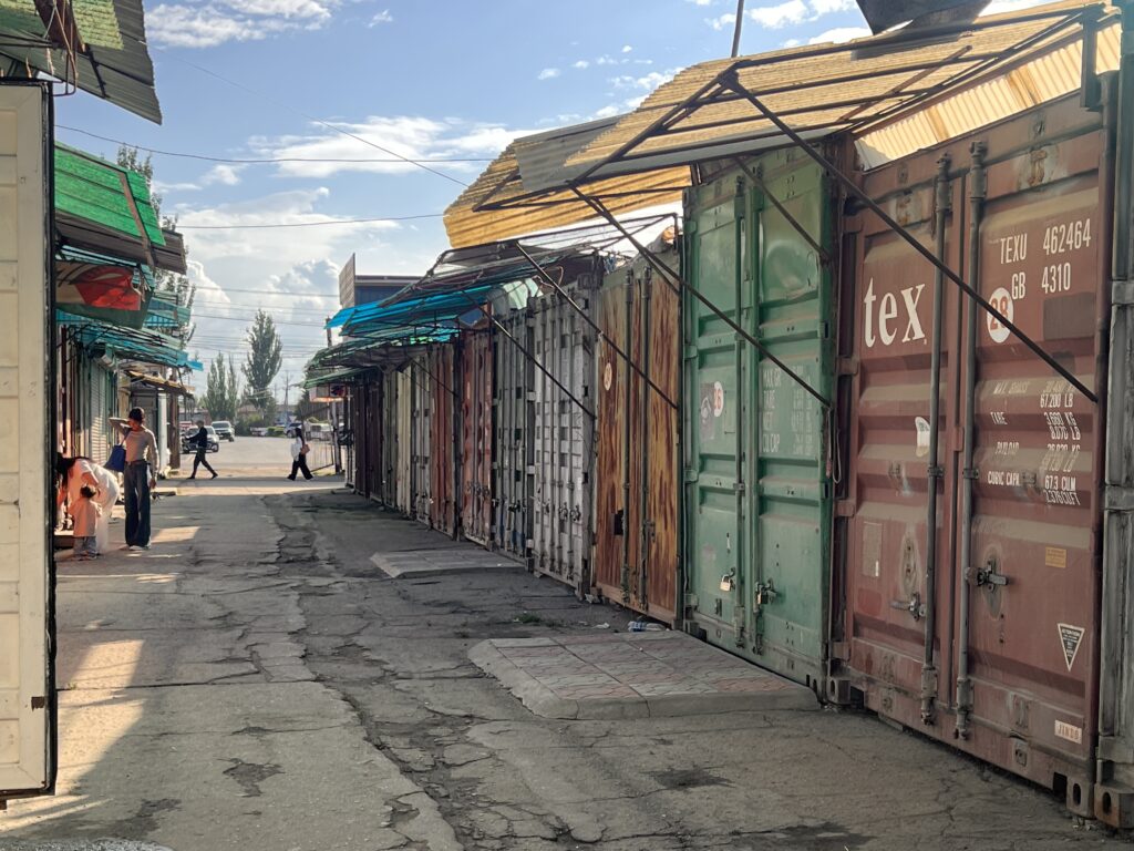こちらはカラコルのバザール(小)(バザール(大)もあります。笑)。コンテナ店舗が多いですね。建物を建てるより経済的なのね。キルギス海ないけど、中古コンテナ安いのかな?遠くから届いたコンテナそのまま再利用してるのかな?送り返すよりコスト低いとか?