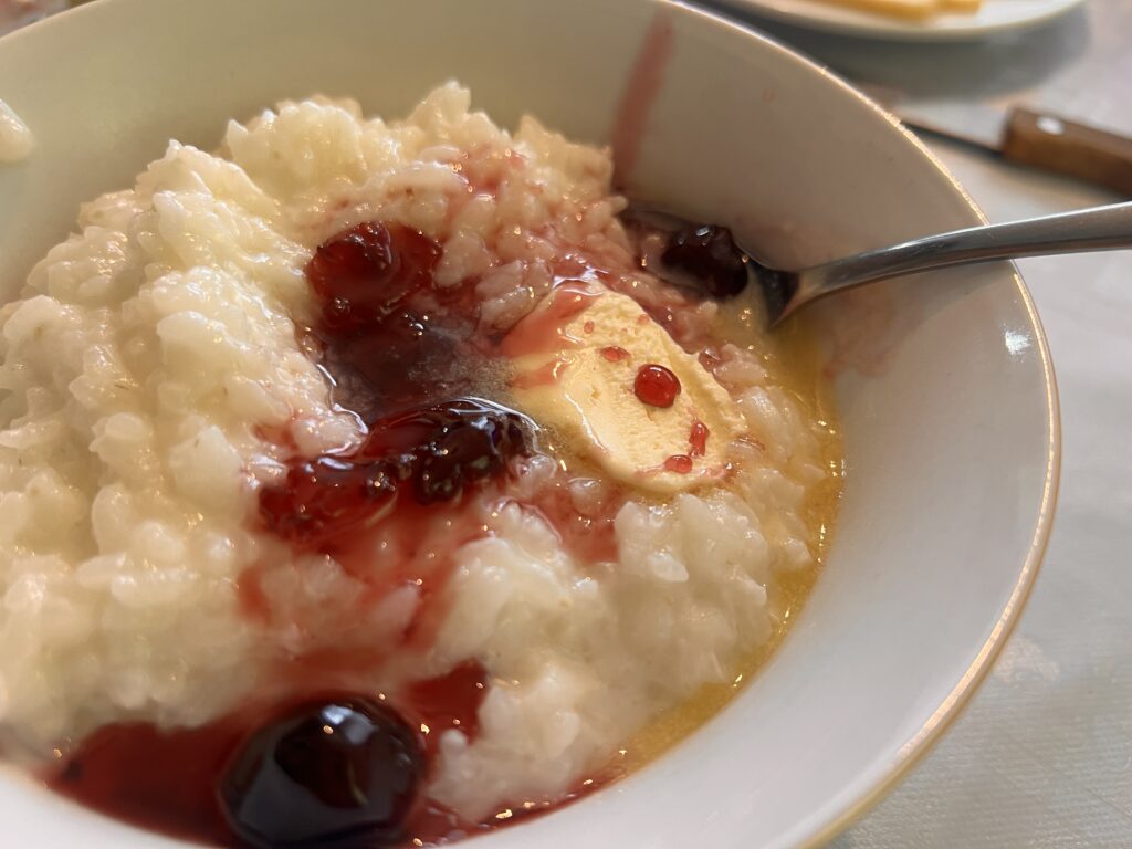 ミルクがゆに「バターとジャムを入れるのよ」って!こっちのおかゆは甘い系なことが多いですね。ロシア人のお姉さんはアプリコット(生)を入れていました。スイーツの部類なんでしょうかね。これはこれでとても美味しいけど、日本だったらオートミールでいいな。米の甘みがもったいない(熱烈米ファン)。