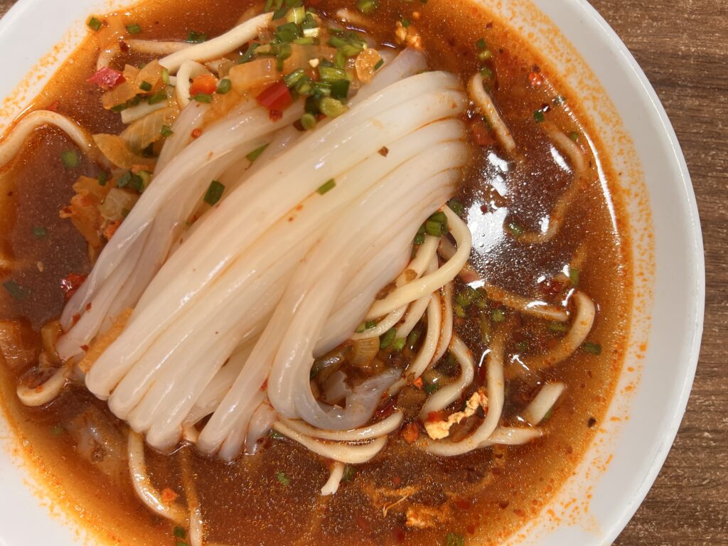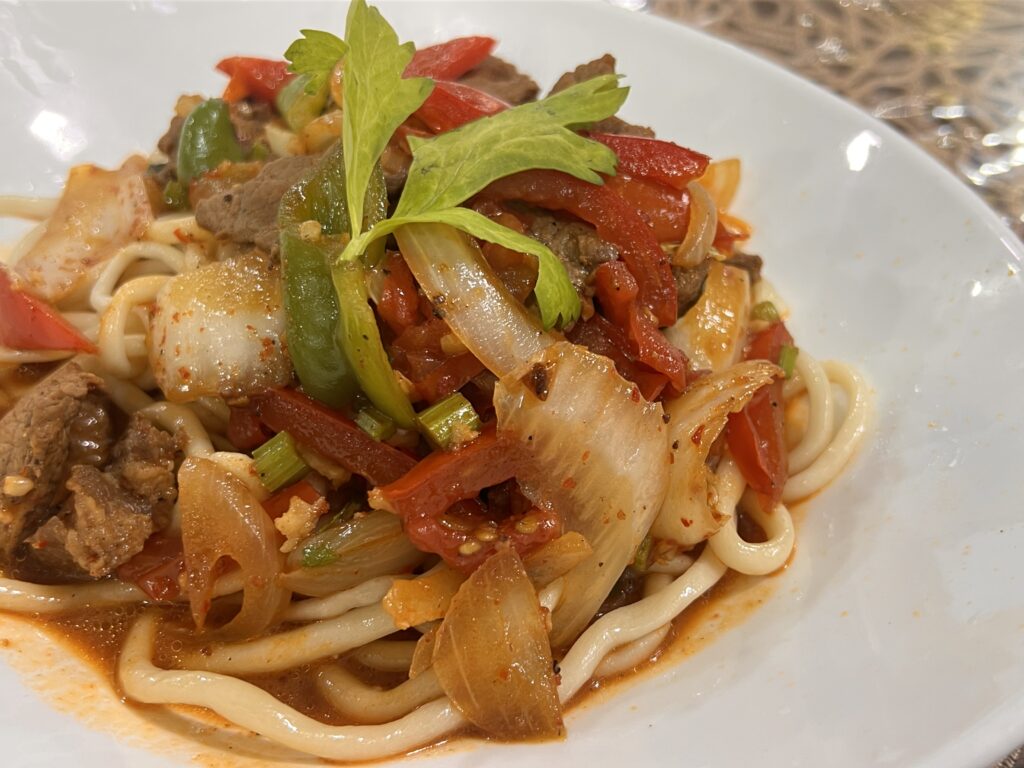 店名にもなっているアシュランフーはドゥンガン人が中国から持ち込んだとされる涼麺(ところてん的麺)と小麦麺の2種類を、ピリ辛で酸味のある冷たいスープでツルッといただくキルギス版冷やしラーメン的一品で、カラコルの名物となっています。