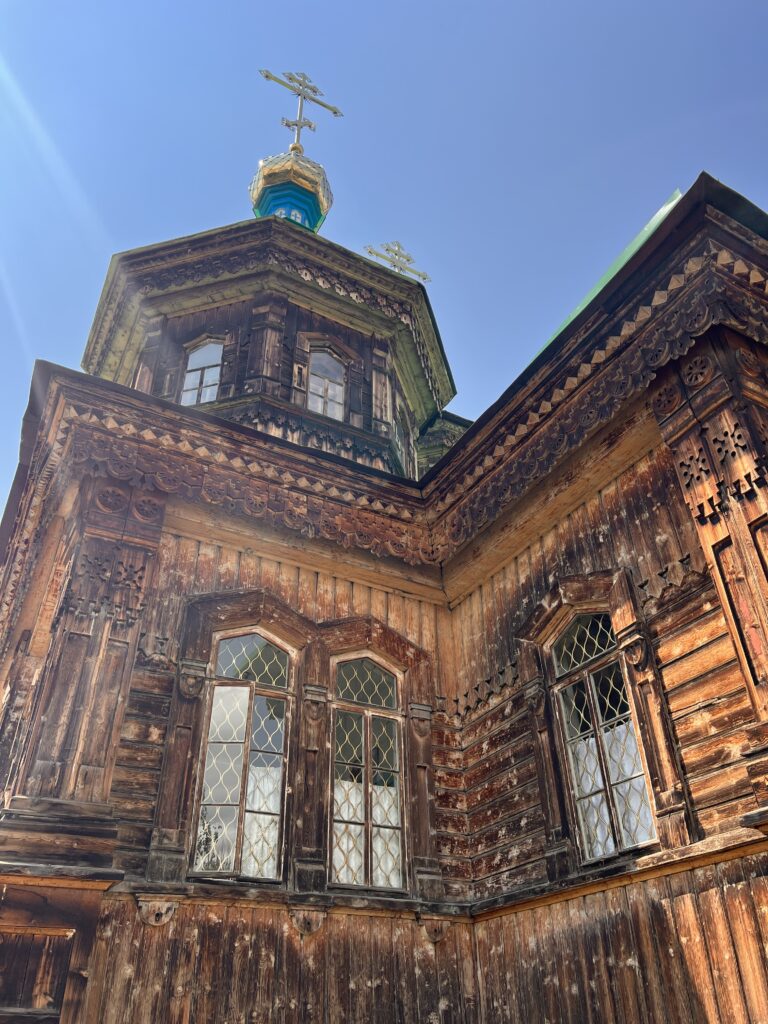 本記事冒頭の教会の写真は、カラコルの聖三位一体教会。チャッピー(ChatGPT)によると1895年完成、木造の正ロシア教会の教会で、釘が一本も使われていないらしい。まじで?(疑) っていうくらい細やかな造り。カラコルにはドゥンガン人のモスクもあるんですが、こちらも釘使ってないらしい。(行ってないけど)