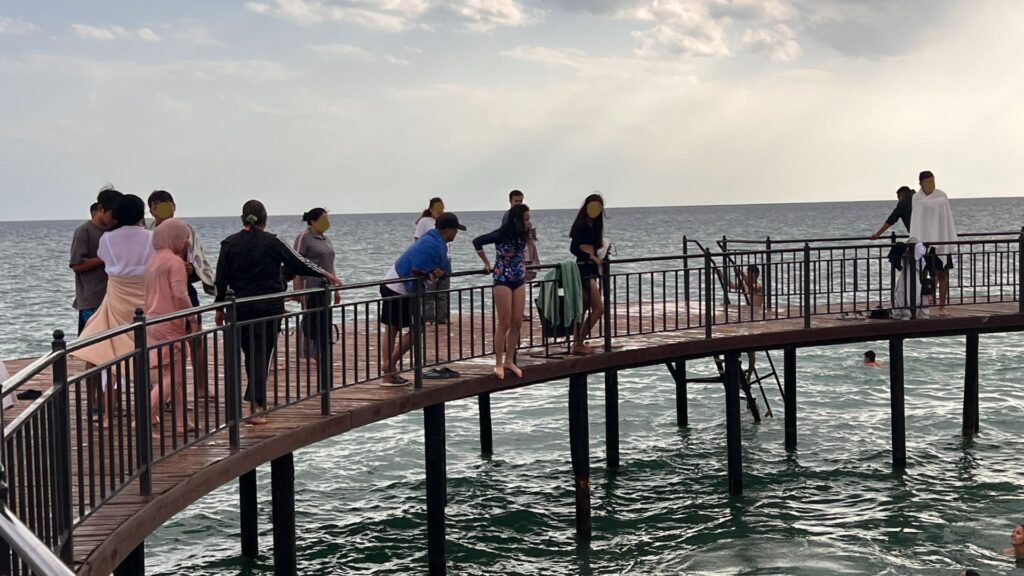 普段生活しているなかでも、バッチリヒジャブしてる女性は多くない、という感じの中央アジア。ソ連時代にイスラム信仰に圧力がかかったので割と戒律が緩めですが、それゆえなのか、現代のムスリムは変化しつつあるのかわかりませんが、興味深かったです。ただ、着衣水泳は危険なので、おばさん(私)はそれだけ心配ですよ。